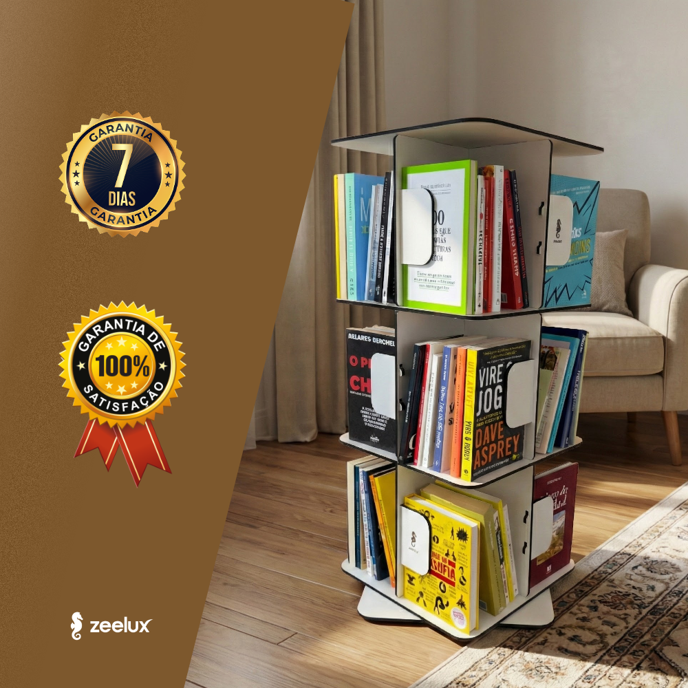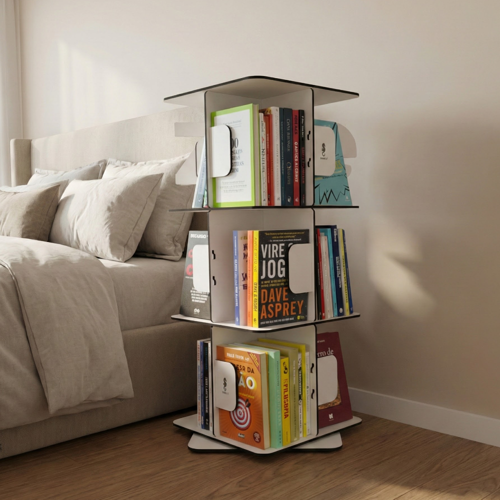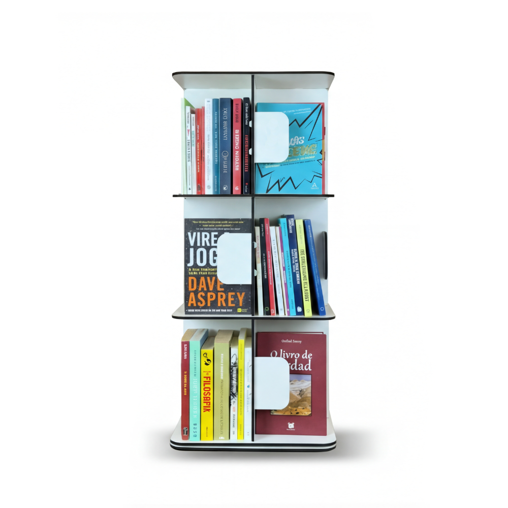 Seja no escritório, na sala ou no quarto, sua estrutura giratória facilita o acesso aos livros de maneira rápida e eficiente. Feita em MDF de alta qualidade , uma combinação de durabilidade e sofisticação, encaixando-se perfeitamente em qualquer decoração.